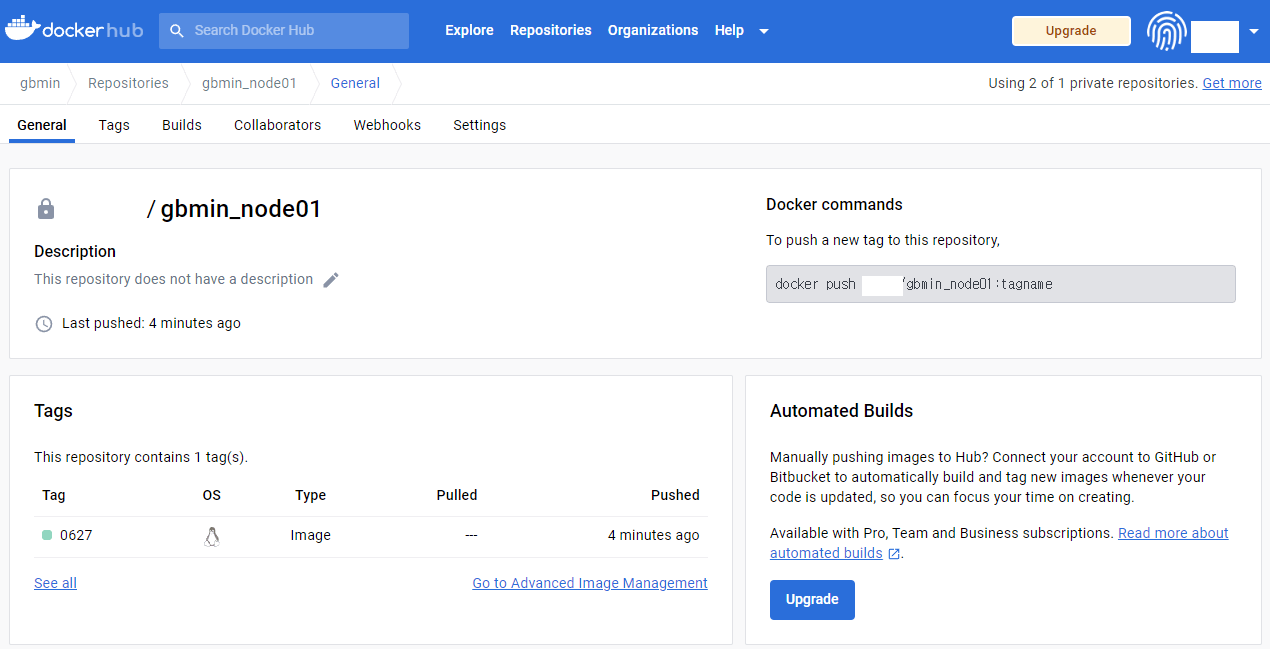 gbmin/gbmin_node01 0627 f5756a512457 11 minutes ago 229MB << 업로드할 이미지 생성