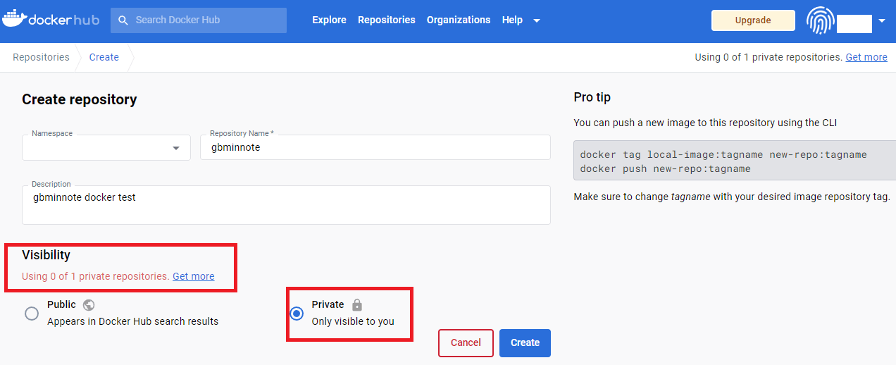 - 공개 및 개인 저장소: Docker Hub에는 수백만 개의 이미지가 포함된 공개 저장소가 있다. 이 공개 저장소를 통해 누구나 다양한 종류의 Docker 이미지를 무료로 다운로드하고 사용할 수 있다. 또한, 개인적인 사용 또는 팀 내에서만 공유하려는 이미지를 위해 개인 저장소를 생성하고 사용할 수 있습니다. 개인 저장소는 무료로 한 개까지 생성할 수 있으며, 추가 저장소는 유료로 결제 후 이용 가능하다.