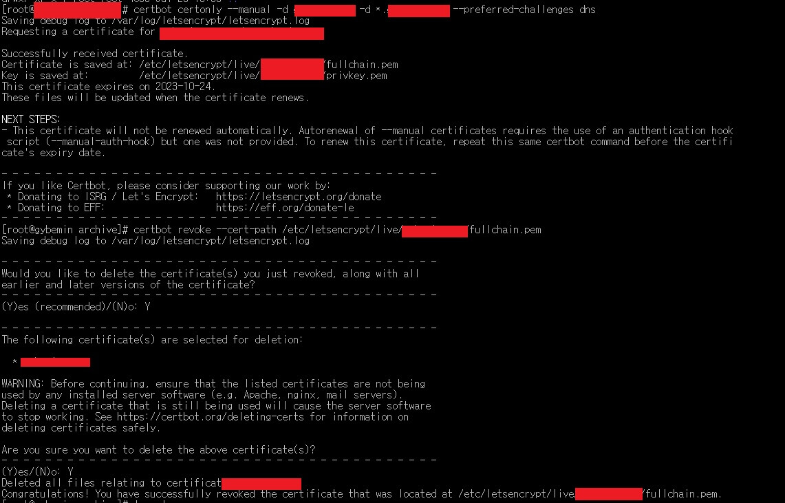 # certbot certonly --manual -d DOMAIN.com -d *.DOMAIN.com --preferred-challenges dns