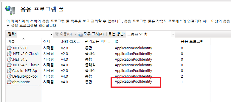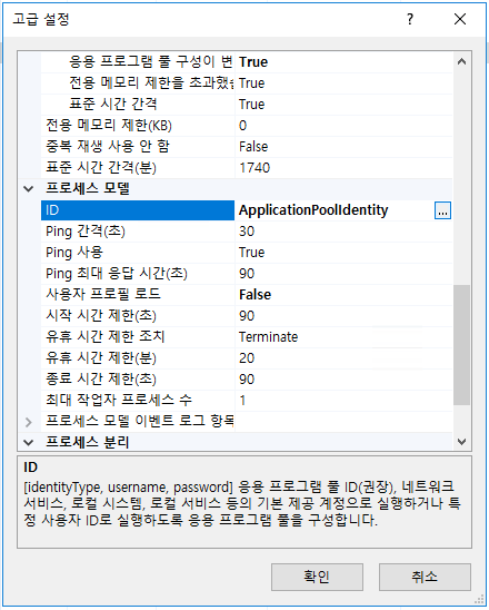 - 풀 → 속성 → 고급설정 → 프로세스 모델 → ID