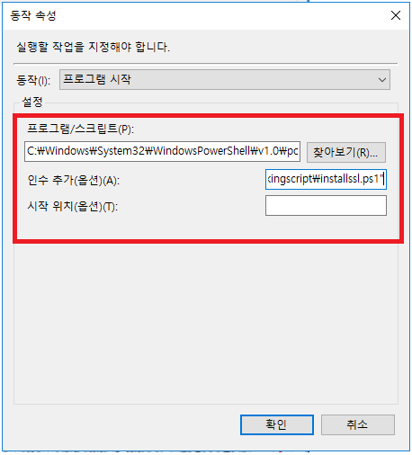 인수추가 : -ExecutionPolicy Unrestricted -File ""C:\workingscript\installssl.ps1"