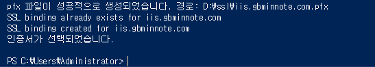 Write-Host "pfx 파일 생성에 실패했습니다."